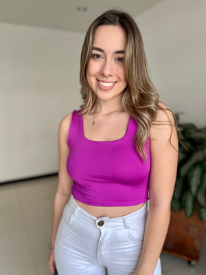 Top básico en acetato. Colores: rojo, negro, naranja, fucsia, blanco, amarillo pastel, morado y lila. Ref: Carla.