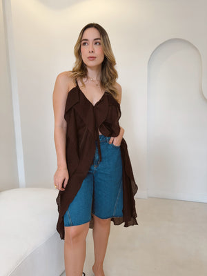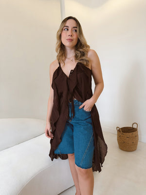 Cuenta con pretina tradicional, bolsillos funcionales y dobladillo deshilachado que aporta un toque relajado. Perfecta para combinar con blusas frescas, tops o camisas.