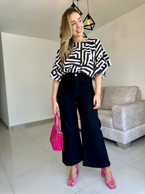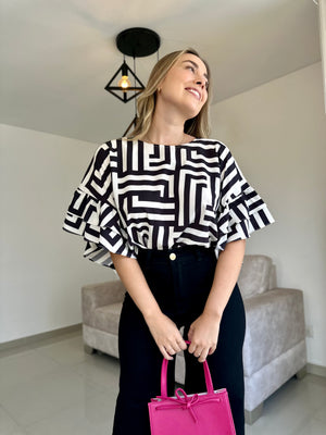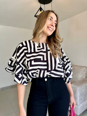 BLUSA AMELIA PRINT NEGRO-MARFIL