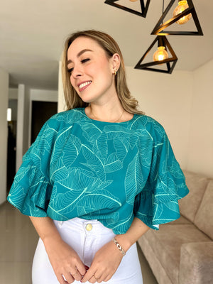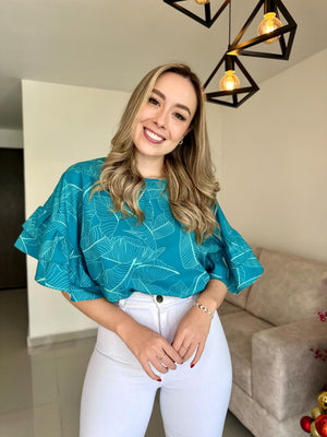 Frescura y estilo se combinan en esta hermosa blusa de mangas amplias con golas, ideal para un look elegante y relajado. Combínala con jeans, pantalones unicolor o faldas para un look impecable!