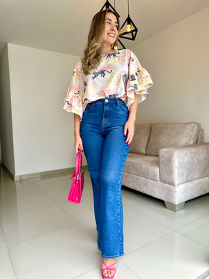 Frescura y estilo se combinan en esta hermosa blusa de mangas amplias con golas, ideal para un look elegante y relajado. Combínala con jeans, pantalones unicolor o faldas para un look impecable!