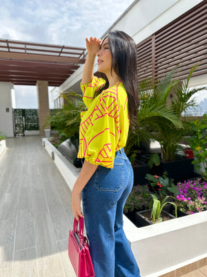 BLUSA CLOE PRINT VERDE LIMA-FUCSIA