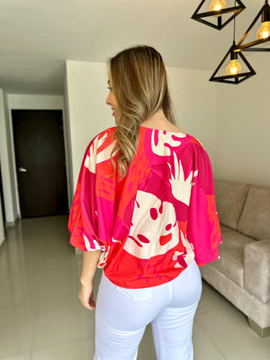 BLUSA CLOE PRINT FUCSIA- HOJA BLANCA