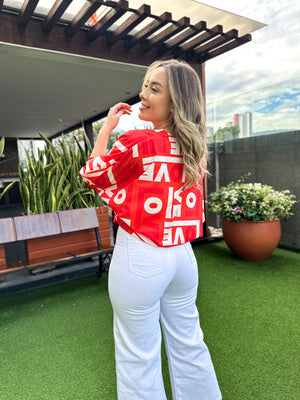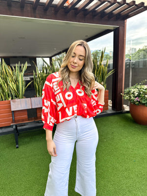 BLUSA ESMERALDA ESTAMPADA ROJO-BLANCO