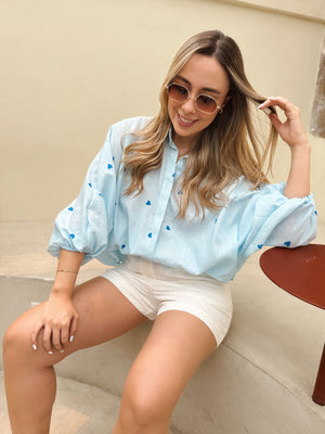 BLUSA GEORGINA PRINT CELESTE CORAZÓN AZUL