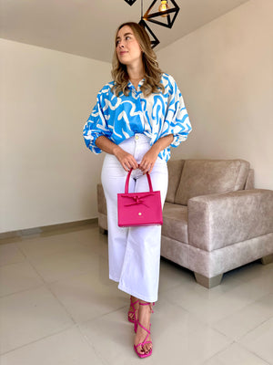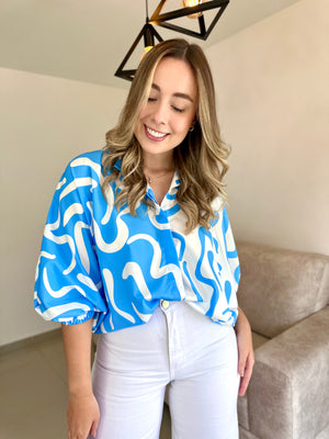 BLUSA GEORGINA PRINT AZUL COMBINADO