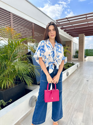BLUSA GEORGINA PRINT BLANCO-CELESTE