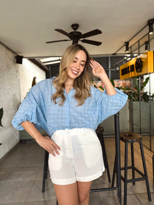 BLUSA GEORGINA OJALILLO PEQUEÑO CELESTE