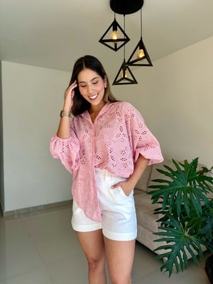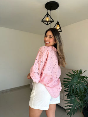 Dale un toque delicado y fresco a tus outfits con esta hermosa blusa de ojalillo en tono celeste. Esta blusa destaca por su diseño bordado tipo ojalillo, ideal para lucir un estilo romántico y femenino sin dejar de lado la comodidad. Su corte amplio tipo oversized y mangas 3/4 con elástico en los puños la hacen perfecta para el día a día o para una salida casual con estilo.