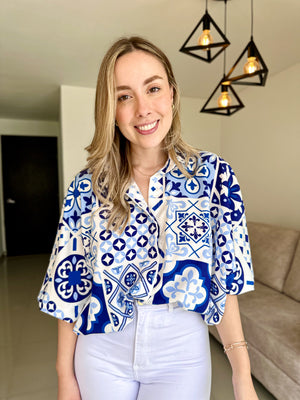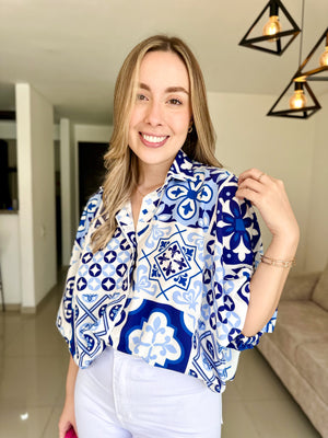 BLUSA GEORGINA PRINT AZUL-CELESTE