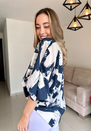 BLUSA GEORGINA PRINT PINCEL AZUL OSCURO