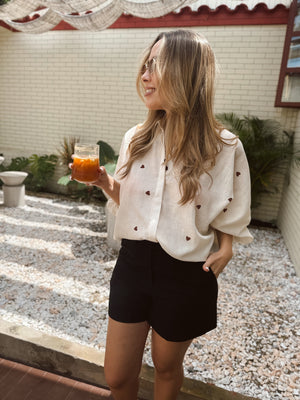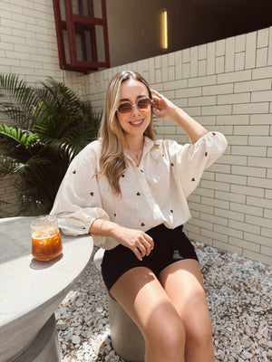 BLUSA GEORGINA PRINT CORAZÓN CAFÉ