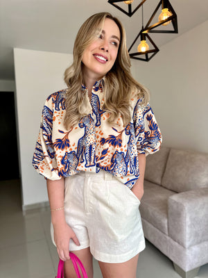 Atrévete a lucir sofisticada y con mucho estilo con la Blusa Georgina, una prenda que combina comodidad y diseño con su estampado. Su corte holgado y ligero te brinda libertad de movimiento, mientras que sus detalles cuidadosamente diseñados elevan tu look al siguiente nivel.