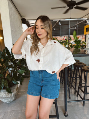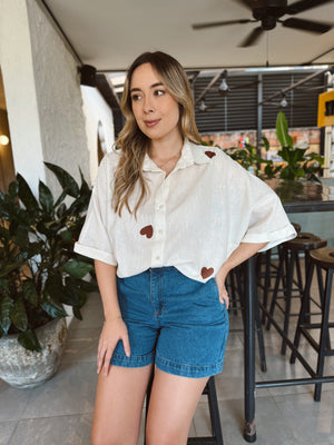 BLUSA LETICIA PRINT CORAZÓN CAFÉ