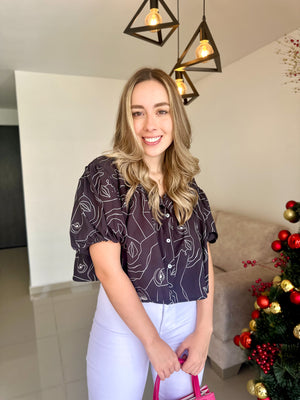 Dale un toque fresco y femenino a tu look con esta blusa de manga corta. Su diseño con mangas abullonadas y un ajuste holgado la hace una pieza versátil y moderna, brinda comodidad sin perder el estilo.