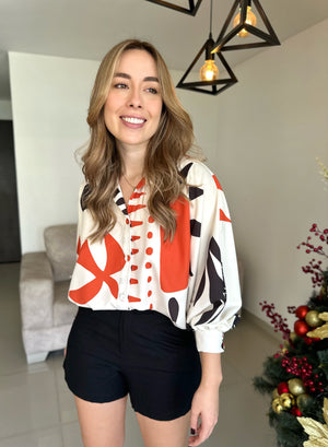 BLUSA MARTINA PRINT BLANCO-NARANJA