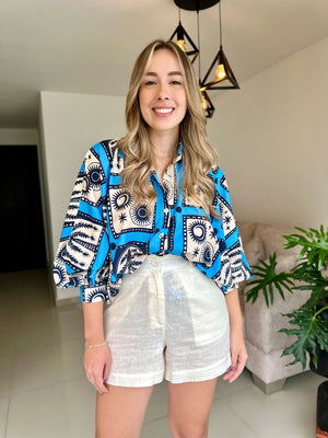 BLUSA MARTINA PRINT PALMERAS AZUL