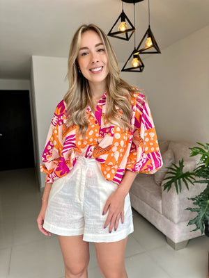 BLUSA MARTINA PRINT PEZ NARANJA-MAGENTA