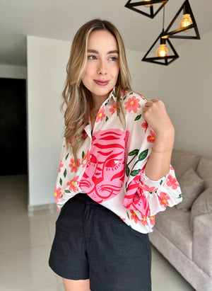 BLUSA MARTINA PRINT TIGRE ROSA Y FLORES