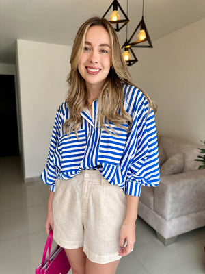 La Blusa Bali es sinónimo de frescura y sofisticación. Su diseño fluido y su confección en seda la convierten en una prenda imprescindible para quienes buscan un look elegante, fresco y versátil. Perfecta para combinar con pantalones o shorts en tonos neutros.