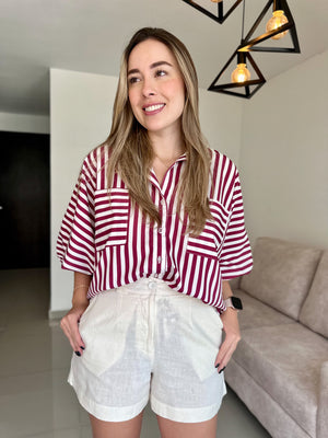 BLUSA BALI PRINT RAYAS VINO TINTO