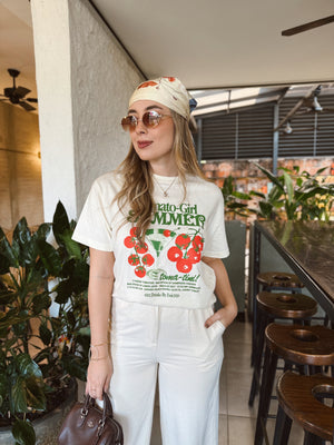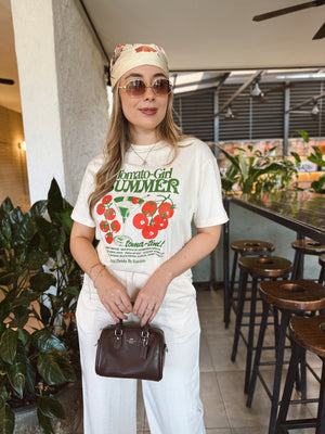 Camiseta color marfil de manga tipo Oversize con diseño estampado frontal. Su corte relajado la hace cómoda y versátil, ideal para looks frescos y modernos. Confeccionada en tela suave y ligera, perfecta para combinar con jeans, shorts o faldas en outfits casuales del día a día.