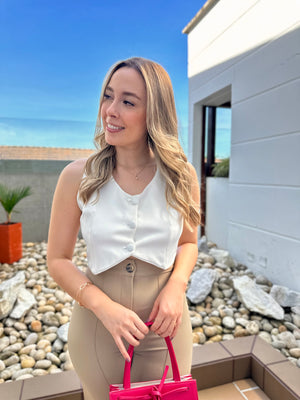 Este chaleco es ideal para conjuntos monocromáticos sofisticados o para combinarlo con jeans y faldas para un look más casual pero chic. ¡Una prenda clave para looks modernos y femeninos!