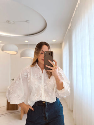 Dale un toque delicado y fresco a tus outfits con esta hermosa blusa de ojalillo en tono blanco. Esta blusa destaca por su diseño bordado tipo ojalillo bordado, ideal para lucir un estilo romántico y femenino sin dejar de lado la comodidad. Su corte amplio tipo oversized y mangas 3/4 con elástico en los puños la hacen perfecta para el día a día o para una salida casual con estilo.