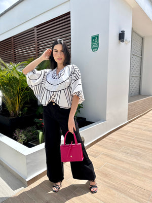 La Blusa Cloe es sinónimo de frescura y estilo.Tiene dos formas de uso, su estampado y su diseño fluido la convierten en la pieza perfecta para destacar con un look moderno. Llévala con jeans para un look casual o con pantalón de vestir para una ocasión especial.