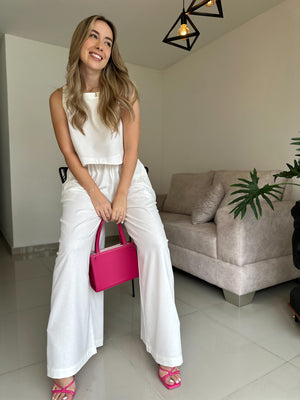 Este impactante set de dos piezas es el equilibrio perfecto entre estilo y comodidad. Su diseño monocromático resalta la figura con un aire sofisticado y moderno, ideal para cualquier ocasión especial o un día donde quieras destacar. Úsalo con sandalias para un look cómodo y casual o con tacones para una versión más sofisticada.