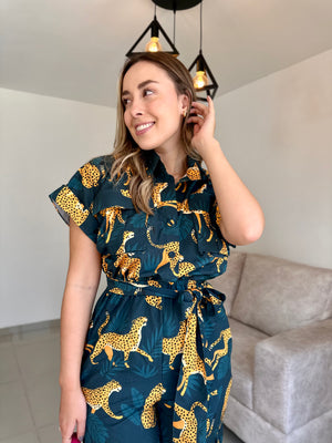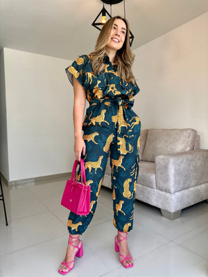 Sofisticación y comodidad en una sola prenda. El enterizo ámbar es la elección perfecta para lucir impecable en cualquier ocasión. Su diseño tipo cargo con bolsillos en el pecho y ajuste elástico en la cintura estiliza la silueta, mientras que el lazo frontal añade un toque de elegancia.