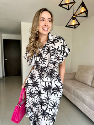 ENTERIZO ÁMBAR PRINT BLANCO-NEGRO PALMAS