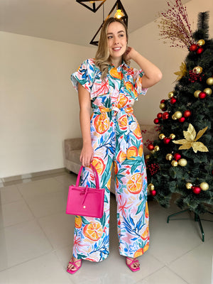 Elegancia y comodidad se unen en este espectacular enterizo, confeccionado en seda para una caída suave y un tacto delicado sobre la piel. Su vibrante estampado lo convierte en la opción ideal para lucir sofisticada y fresca en cualquier ocasión.