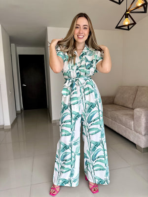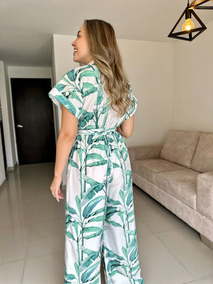 Elegancia y comodidad se unen en este espectacular enterizo, confeccionado en seda para una caída suave y un tacto delicado sobre la piel. Su vibrante estampado lo convierte en la opción ideal para lucir sofisticada y fresca en cualquier ocasión.
