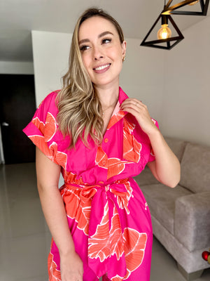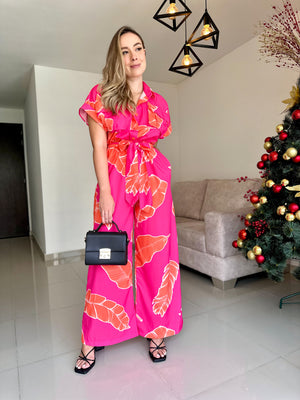 Elegancia y comodidad se unen en este espectacular enterizo, confeccionado en seda para una caída suave y un tacto delicado sobre la piel. Su vibrante estampado lo convierte en la opción ideal para lucir sofisticada y fresca en cualquier ocasión.