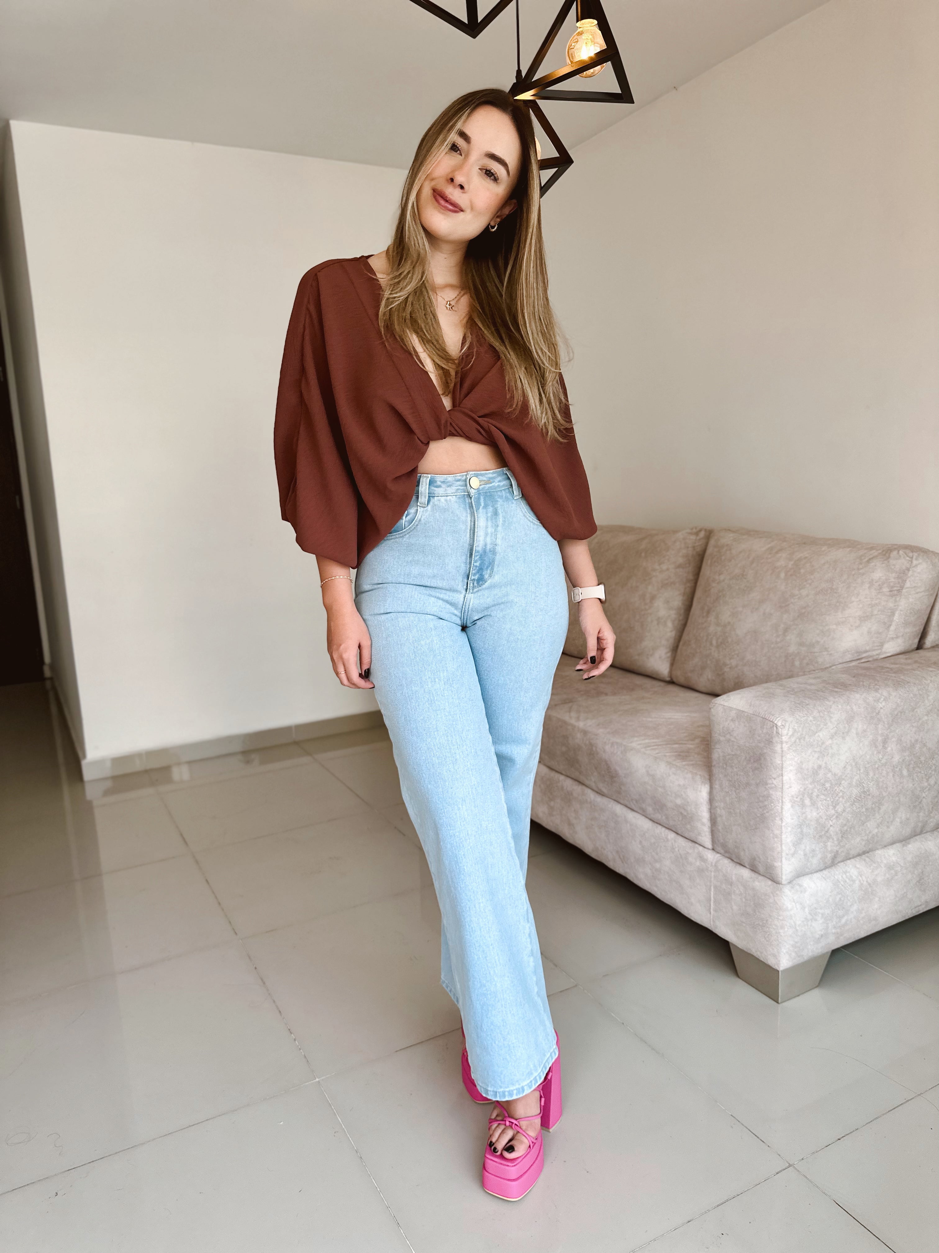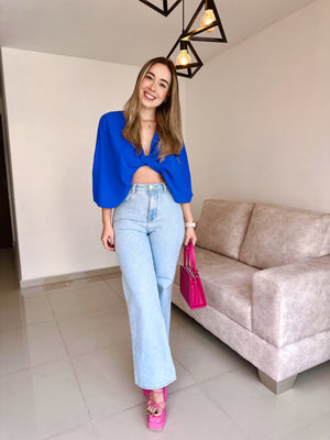 Jean clásico de tiro alto con diseño flare jean, ideal para estilizar la figura y alargar las piernas. Su tono azul clargo con acabado uniforme lo convierte en una prenda versátil que combina con blusas elegantes o looks casuales