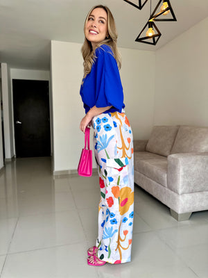 Pantalón elaborado en lino, bota recta, con bolsillos laterales y en la parte trasera.
