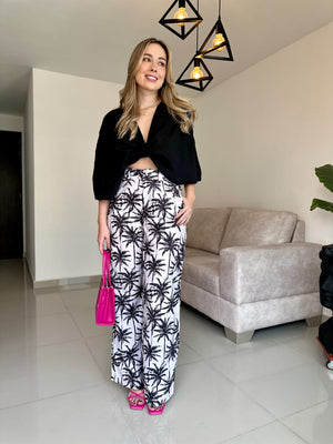 Pantalón elaborado en lino, bota recta, con bolsillos laterales y en la parte trasera.