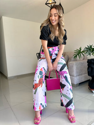 Pantalón elaborado en lino, bota recta, con bolsillos laterales y en la parte trasera.