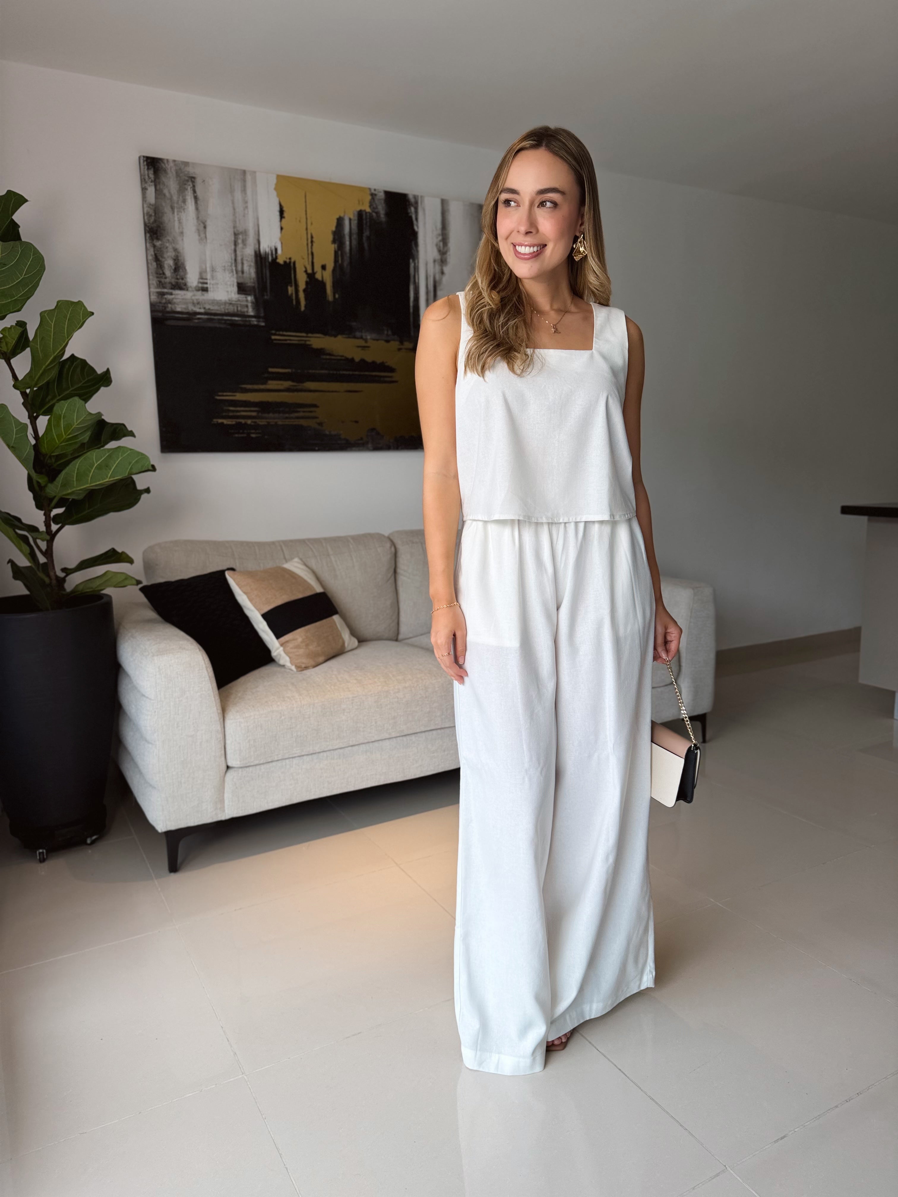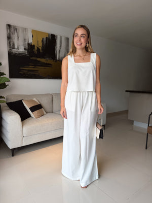 Este impactante set de dos piezas es el equilibrio perfecto entre estilo y comodidad. Su diseño monocromático resalta la figura con un aire sofisticado y moderno, ideal para cualquier ocasión especial o un día donde quieras destacar. Úsalo con sandalias para un look cómodo y casual o con tacones para una versión más sofisticada.