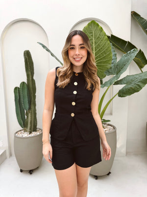 ¡Un set que no pasará desapercibido! Consta de chaleco sin mangas y short de tiro alto es la opción ideal para un estilo sofisticado y moderno. Su diseño estructurado y su color hacen que sea una pieza perfecta para destacar con elegancia y confianza.