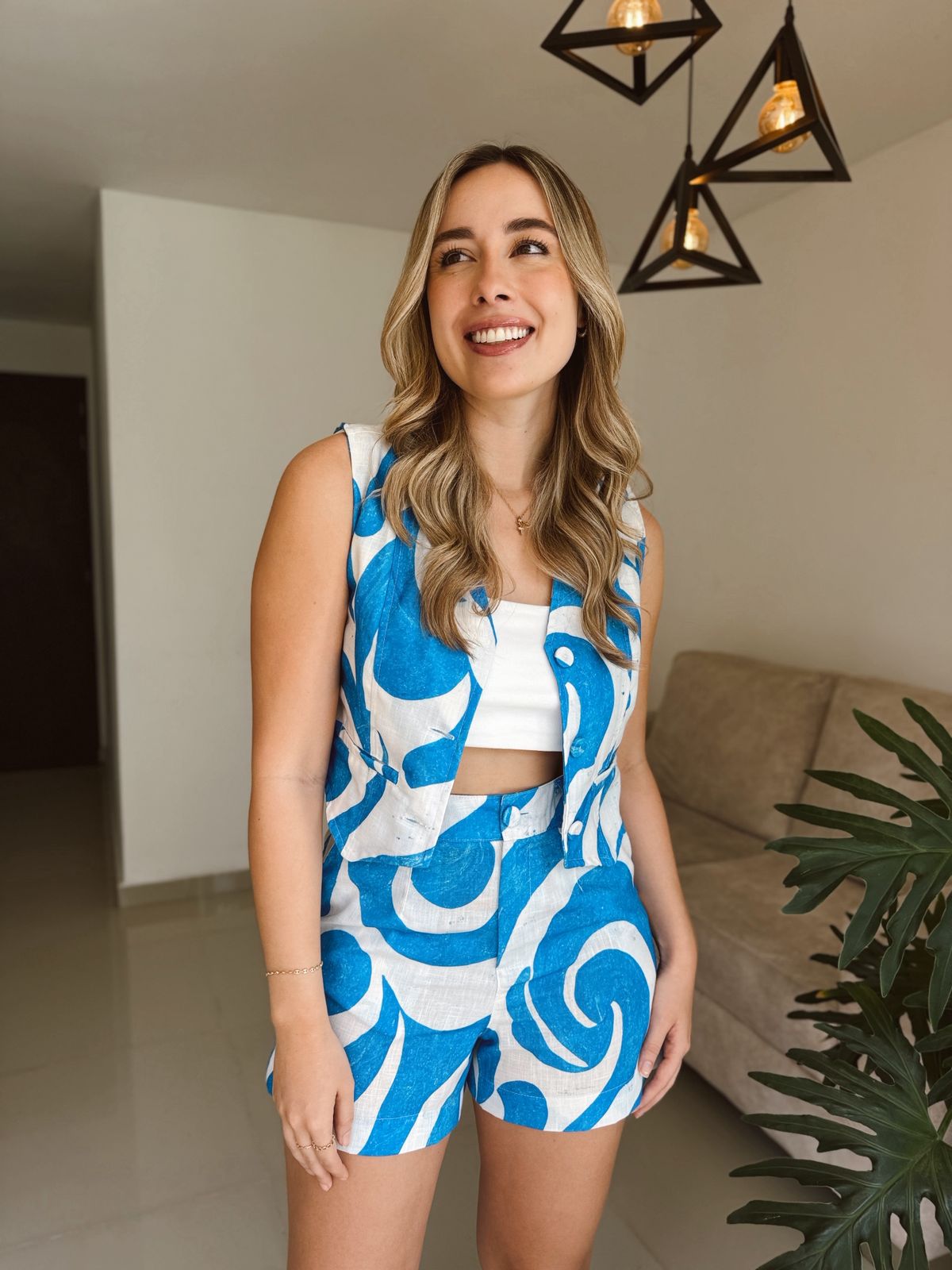 - Short elaborado en lino con bolsillos frontales, tiro alto.