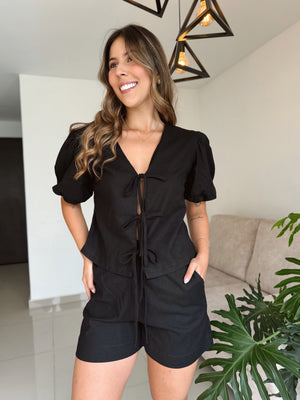 Este hermoso set de blusa y short es la definición perfecta de un look fresco, femenino y versátil. Confeccionado en una tela ligera tipo lino, es ideal para climas cálidos y ocasiones especiales. Perfecto para el día a día, vacaciones o una salida especial.