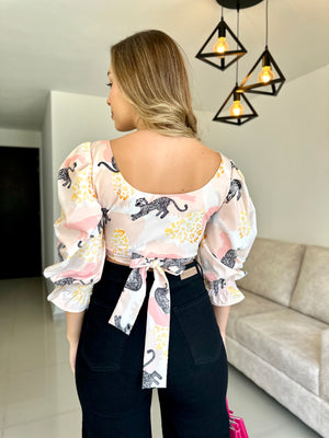 Este hermoso top destaca por su versatilidad y diseño sofisticado, ya que puede usarse de dos maneras: con el escote redondo al frente para un look más clásico o volteada para lucir un escote pronunciado y coqueto en la espalda.
